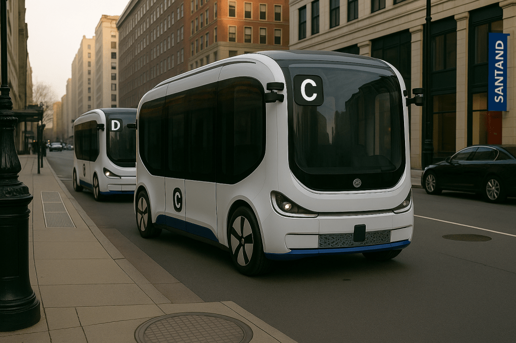 Companies are already apply autonomous driving technology to minibuses like these that are being tested in Barcelona …